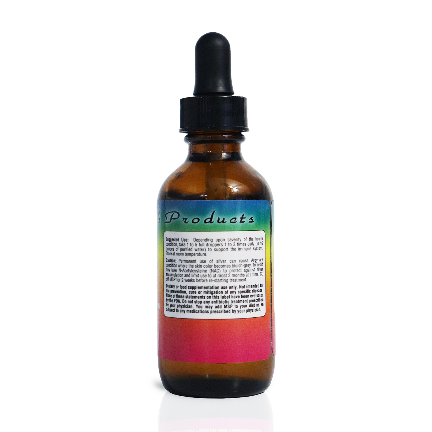All silver products are not created equal and the effectiveness varies considerably. Many products marketed as colloidal silver are actually ionic silver and aren’t very effective. Furthermore, most of these products only contain just 10-30 ppm of silver. With the MSP molecule the protein is used as a carrier for easy body absorption and easy silver particle release as the body absorbs the protein. The silver is bound by a protein molecule, enters the bloodstream throughout the body and is deeply absorbed. The host or the virus, bacteria, or fungus seem to be attracted by the food-grade protein molecule. The protein molecule is either eaten off and or is attracted to the pathogen, and the silver then either suffocates or shuts down the pathogen.