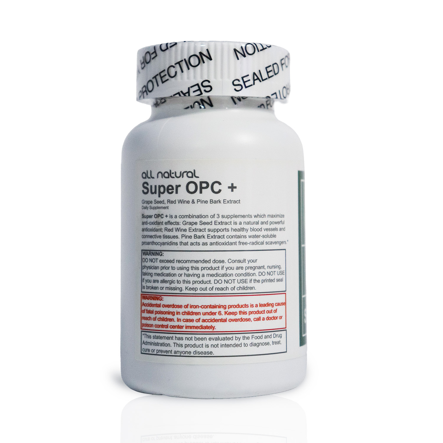 Grape Seed Extract is a concentration of the pure oligomeric proanthocyanidins found in grape seeds and skins. The extraction method used to obtain Grape Seed Extract also ensures that it is free from solvent residues. Grape Seed Extract contains powerful, natural, hypoallergenic free radical scavengers and bioflavonoid complexes which are rapidly absorbed and distributed throughout the body.Each Super OPC-Plus capsule contains grape seed extract; which supplies 80~85% oligomeric proanthocyanidins (OPC), red wine and pine bark extract.Red wine extract supports healthy blood vessels and connective tissues.Pine bark extract contains water soluble proanthocyanidins that act as antioxidant free-radical scavengers.Supplement Facts: